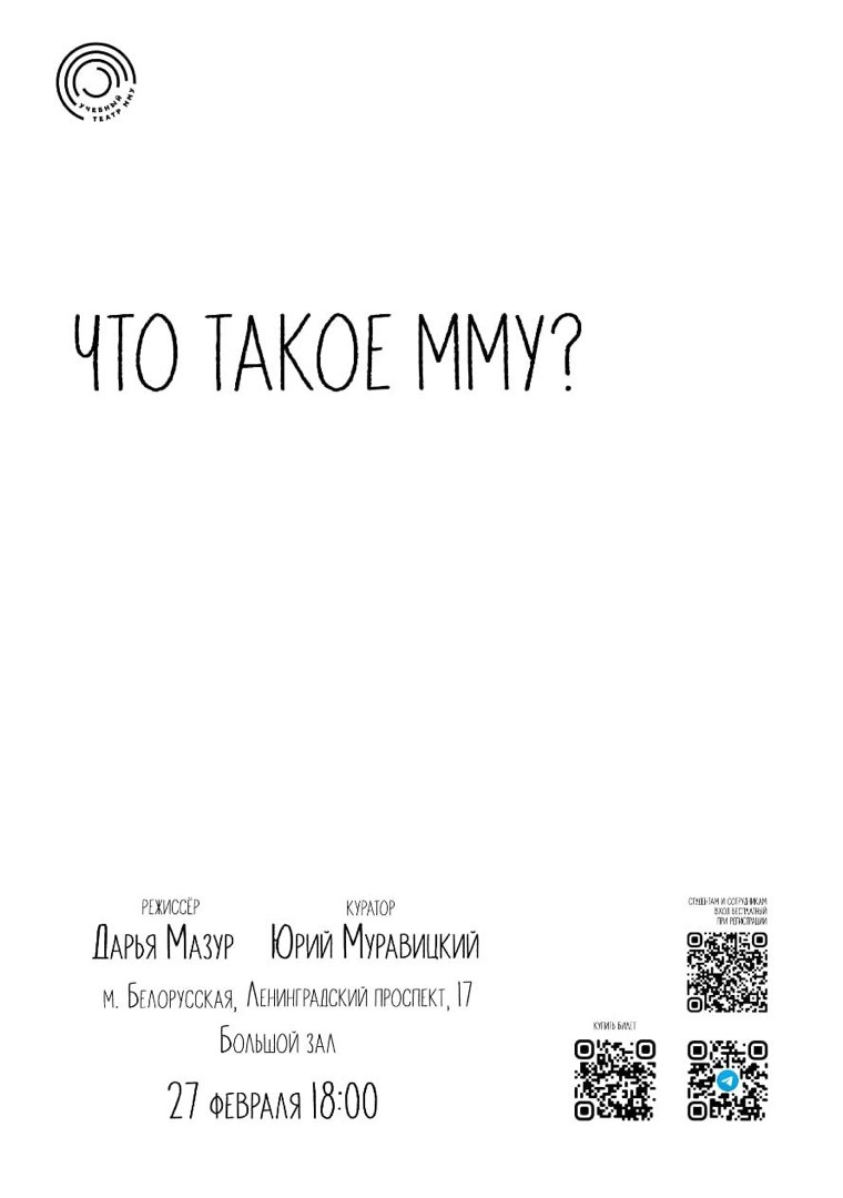 «Я благодарна каждому, кто прошёл этот путь от актёрских и пластических тренингов до постановки спектакля. Очень хотелось увидеть ММУ глазами тех, кто каждый день выбирает быть здесь, понять, что это для меня и ощутить его атмосферу».